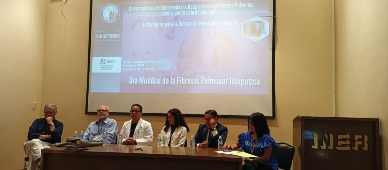 Ciudad de México, 5 de septiembre de 2025. Especialistas del Instituto Nacional de Enfermedades Respiratorias (INER) y organizaciones de la sociedad civil realizaron un conversatorio para urgir la detección temprana de la fibrosis pulmonar, enfermedad progresiva que provoca tos persistente y falta de aire, suele confundirse con asma